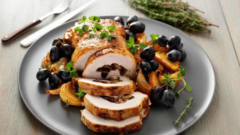 Stuffed with aromatic herbs, apples, and homemade bread stuffing, this recipe transforms a simple pork roast into a centerpiece that’s both rustic and elegant. Whether you’re feeding a crowd or sharing dinner with close family, it’s a beautiful way to savor the flavors—and the blessings—of the season.