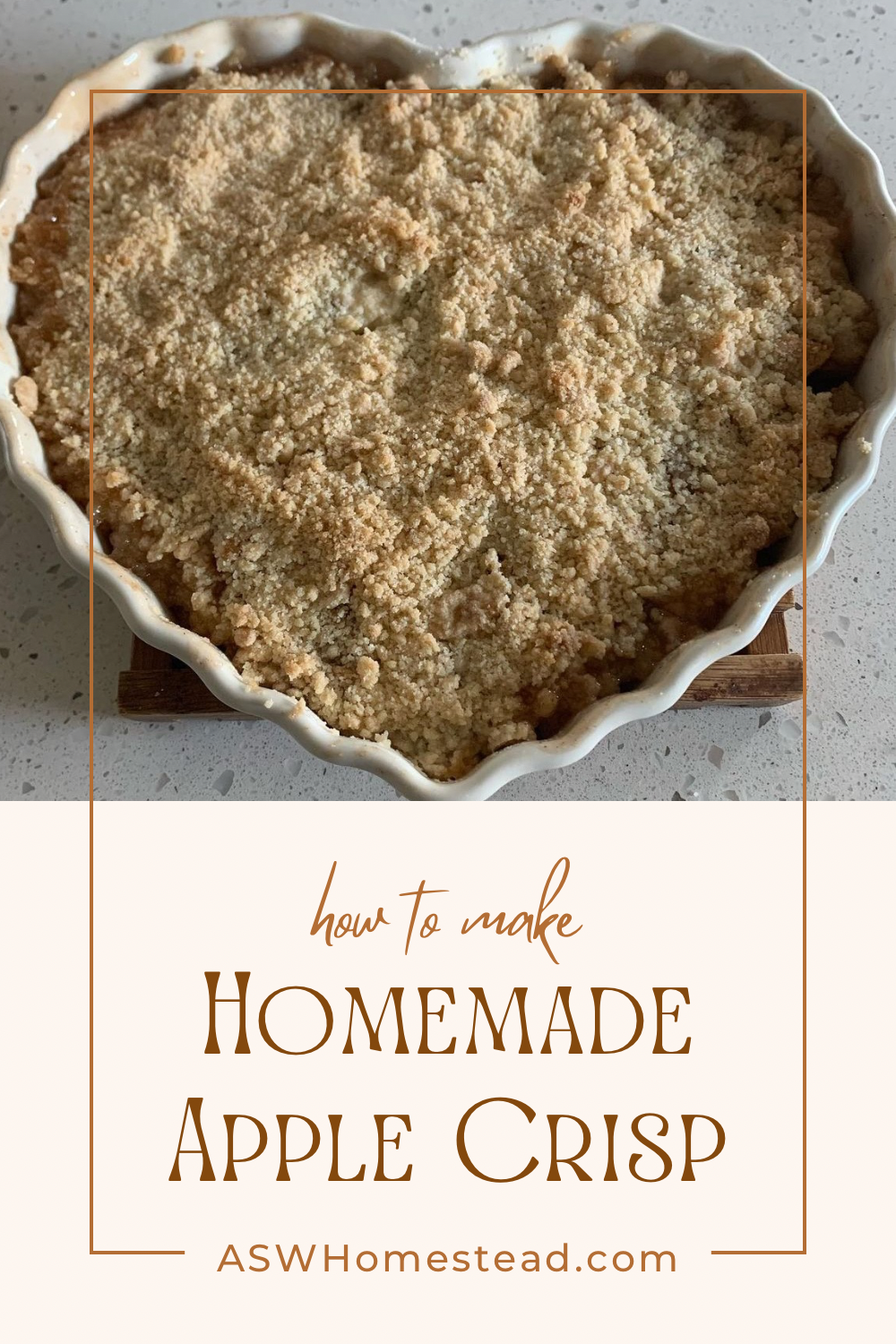 This homemade apple crisp is a cozy fall favorite at ASW Homestead, made with a mix of aging apples and topped with a simple crumble. It's a delicious way to use up soft apples and makes the perfect dessert served warm — especially with a scoop of vanilla ice cream.