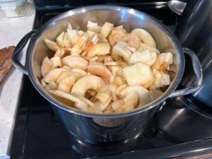 • Cook the Apples: Add 1–2 cups of water to the bottom of a large pot. Add the sliced apples and bring to a boil over medium-high heat, stirring occasionally.