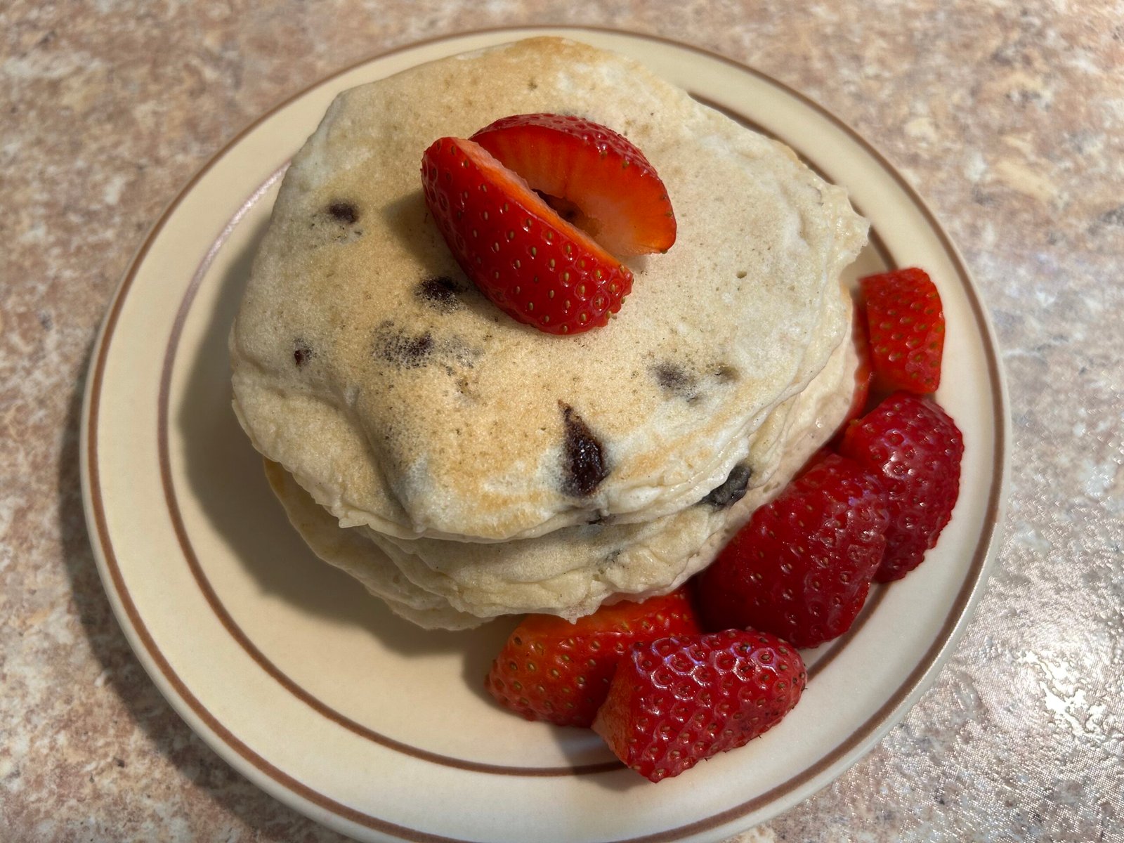 We included a 1/2 cup of chocolate chips to our simple pancakes.