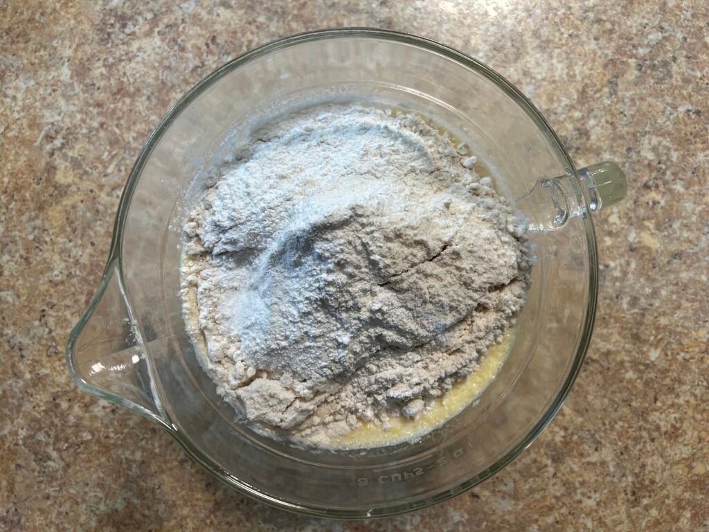 It’s best to whisk the dry ingredients together before you add them to the wet ingredients.