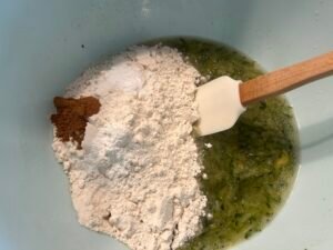 • Prep and mix ingredients. Preheat oven to 350°F. Grease a 9×13-inch baking pan. In a medium bowl, combine shredded zucchini, eggs, sugar, and oil. In a separate bowl, whisk together flour, baking powder, baking soda, salt, and cinnamon. (Or combine everything in one bowl if you're keeping it simple!)