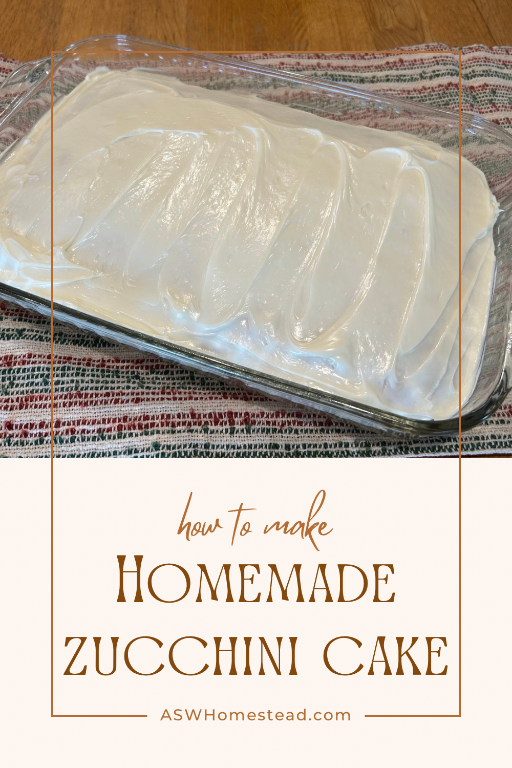 This moist zucchini cake is a sweet way to use up garden zucchini — topped with creamy icing or served plain, it's a homestead favorite straight from the freezer to the oven.